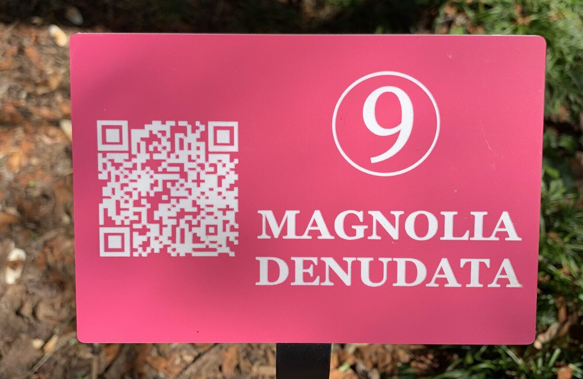 Our Magnolia collection is especially popular, and so the Botanical Garden has a special way to search for them during their blooming season. During Magnificent Magnolia season, you’ll find QR codes throughout the Botanical Garden that lead to specific species’ taxon pages, accompanied by a physical map in the garden. Developed in 2021, this feature gives everyone a way to discover our Magnificent Magnolias without needing a docent tour or a paper map.